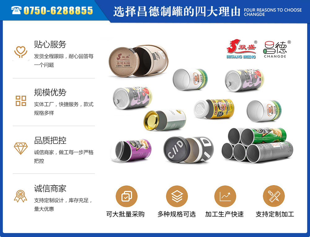 江門市昌德五金制罐有限公司位于江門與珠海臨近的古井鎮,是專業生產紙罐,食品紙罐系列的包裝研制、開發(fā)、生產的廠家,從建廠至今,公司本著“重合同、守信用”的原則,以“質量求生存,客戶至上”為經營宗旨,贏得了很好的信譽,公司擁有國內一流的技術設備和多年的生產經驗。年產休閑食品紙筒500萬左右,紙筒2000萬支左右,易拉罐,食品罐等1000萬左右,產品銷往各地。我廠是以高科技為先導,以技術創(chuàng)新整合為手段,成為迅速崛起的專業性包裝企業,憑借艱苦的創(chuàng)業精神和集體智慧,采用規(guī)范的現代企業運行機制,形成具有鮮明特色的企業文化模式和管理...
